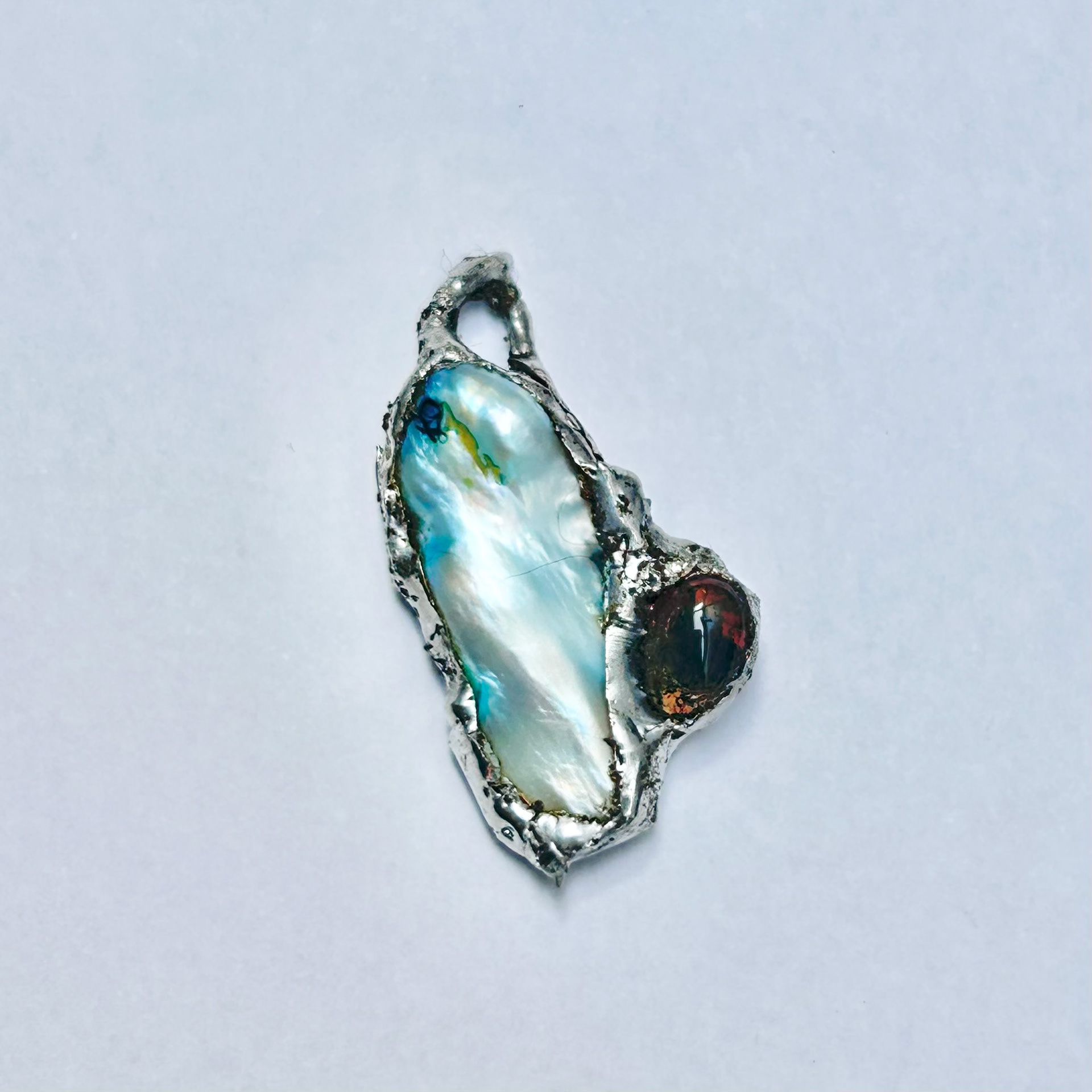 Sterling silver, fresh water pearl and moss agate pendant