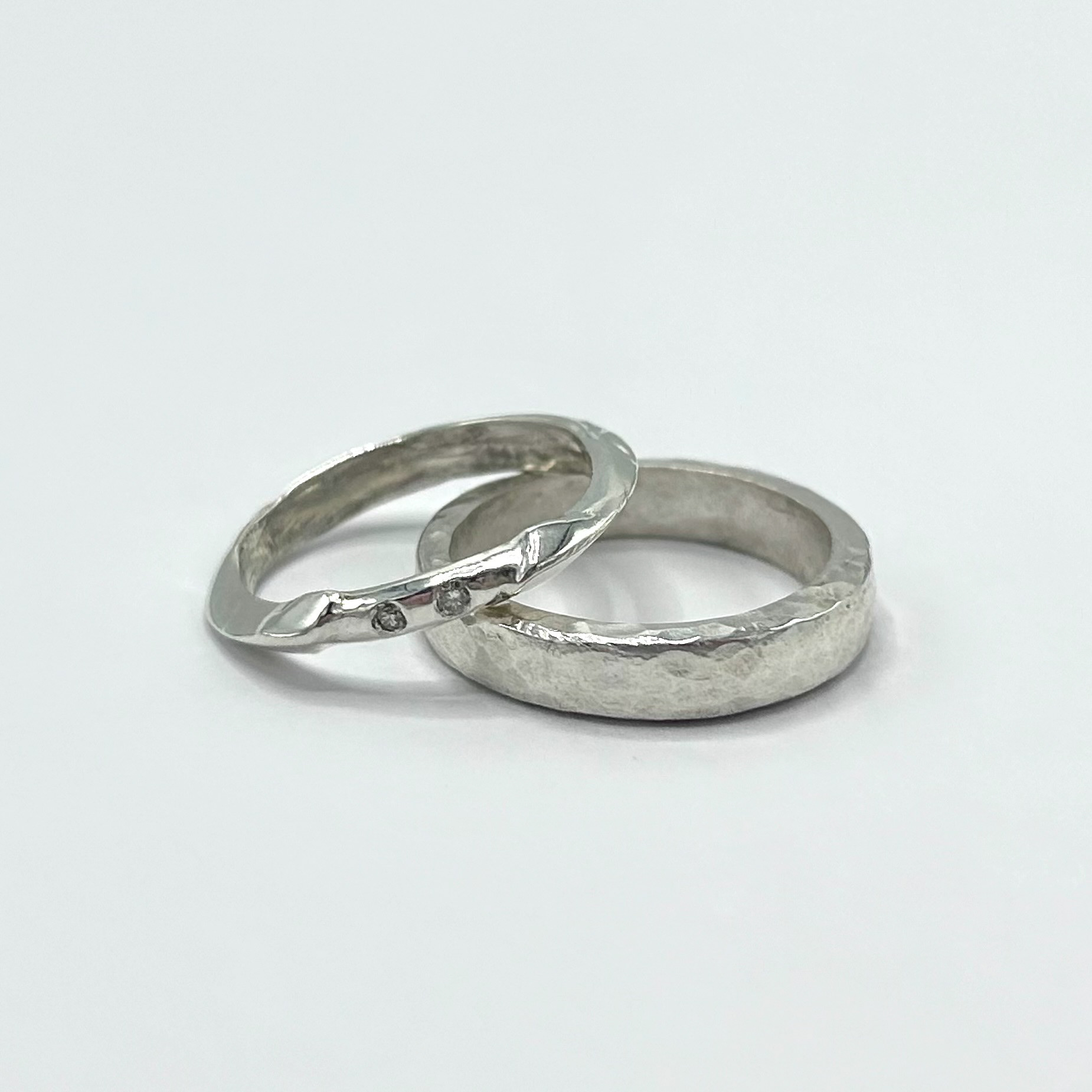 Sterling silver wedding bands with two flush set diamonds